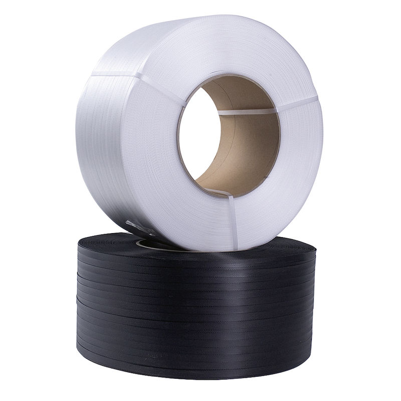 PP-band av polypropylen, lämpligt för bandning av lätt och medeltungt gods. Vid lätt gods kan plastspännen med fördel användas och vid medeltungt gods rekommenderas att man använder metallplomber.