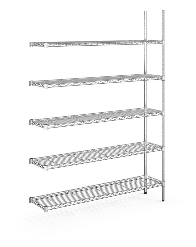 Gallerhylla Joel, belastning per hyllplan 100 kg, BxD 1220 x 360 mm, utbyggnadssektion, höjd 1880 mm, 5 hyllplan.