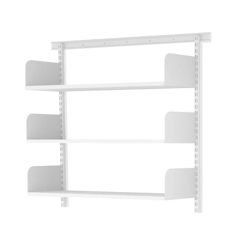 Hyllsystem ELFA Vägghylla. Elfas klassiska väggmonterade hyllsystem. Består av väggskenor, konsoler och solida hyllplan. Perfekt som bokhylla eller sidobord, du bygger själv ihop den variant du vill ha. Kommer komplettera med bokstöd. Finns i flera olika utföranden samt färdiga paket.