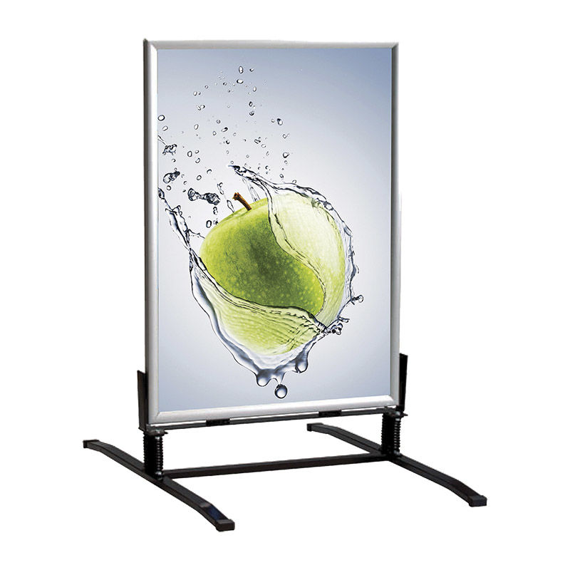 Trottarpratare Windsign, HxB 1000x700 mm, svart/silver. Fjäderställ med kraftig fjädermekanism som tål tuffa påfrestningar. Genom sin fjädrande konstruktion fungerar gatuprataren väldigt bra när det blåser utan att välta.
