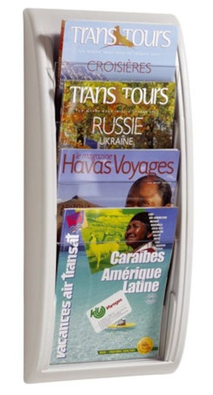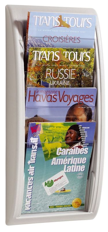 Broschyrställ för vägg, av plast, 4 fack A4, grå. Broschyrställ för vägg, av plast, för format 1/3 A4, A4 eller A5. Stomme av slagfast polystyrol. Förberedd för väggmontering. Genomskinlig skiva gör att broschyrerna är synliga i sin helhet. Fyllnadsdjup 18 mm. Förpackning om 2 st/fp.