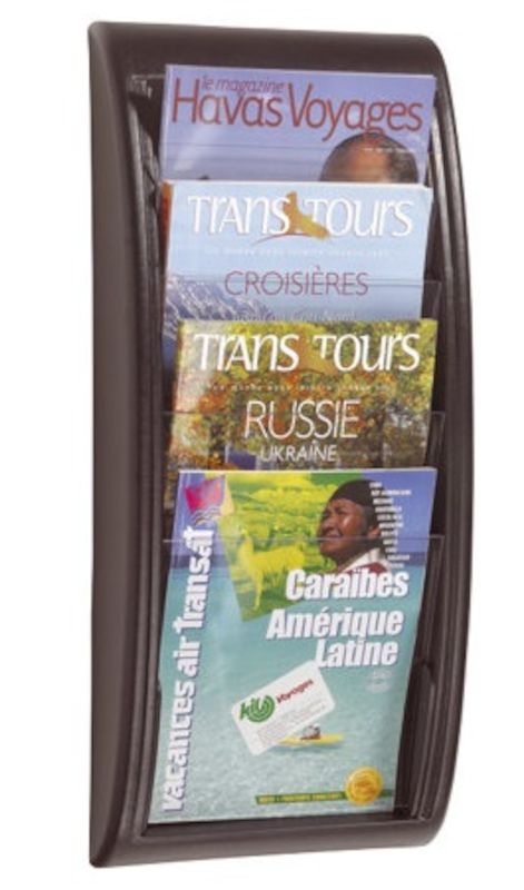 Broschyrställ för vägg, av plast, 4 fack A4, svart. Broschyrställ för vägg, av plast, för format 1/3 A4, A4 eller A5. Stomme av slagfast polystyrol. Förberedd för väggmontering. Genomskinlig skiva gör att broschyrerna är synliga i sin helhet. Fyllnadsdjup 18 mm. Förpackning om 2 st/fp.