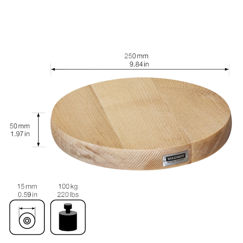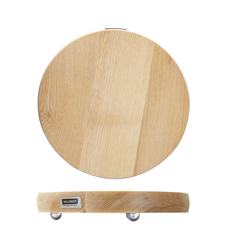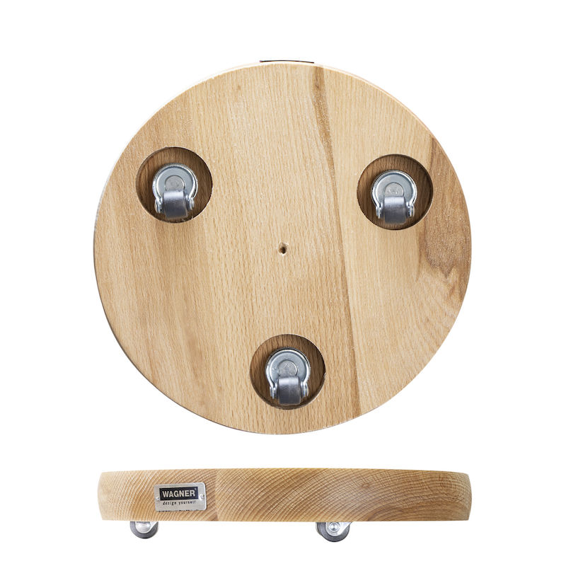 Blomvagn Massiv Bok Wagner, lastkapacitet 100 kg, LxB 250 x 250 mm, natur. Denna blomvagn ger ett svävande intryck när den flyttar tunga krukor. Hemligheten ligger i den extra kraftiga träskivan med en diameter på 250 mm, tillverkad i ett massivt trästycke med tre små, knappt synliga, infällda länkhjul på undersidan. Det obehandlade träet är av massiv bok från ansvarsfullt skogsbruk. WAGNER använder endast trä från ansvarsfullt skogsbruk. Blomvagnen är försedd med en internationellt erkänd miljömärkning.