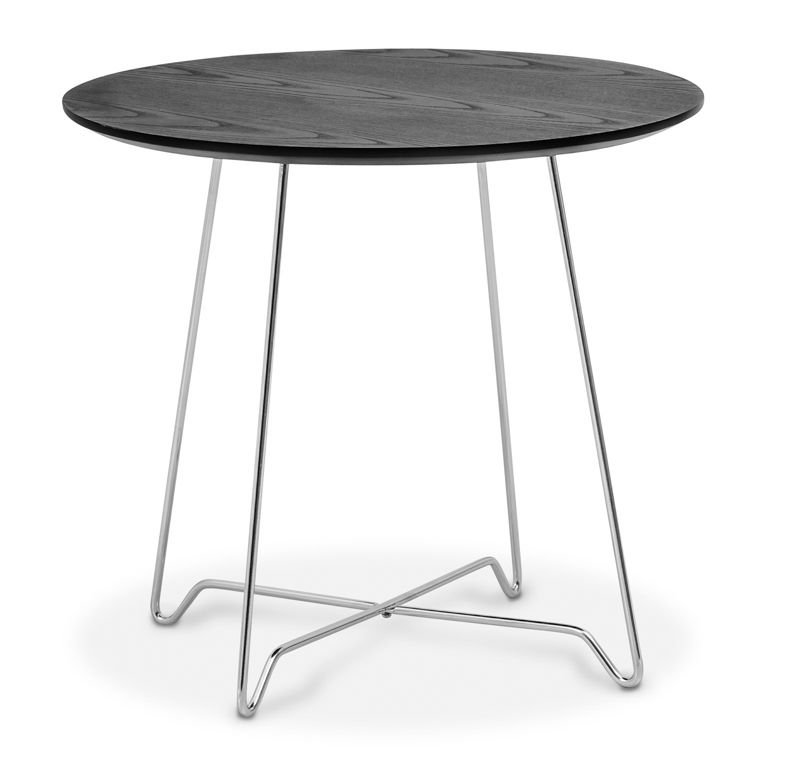 Finns med rund eller rektangulär skiva i svart eller vitt laminat. Soffbordet har ett stabilt metallunderrede i krom, vitt eller svart. Bordet finns i olika storlekar. Det runda bordet med en diameter på 500 mm är lägre och kan därför användas både separat och som satsbord.