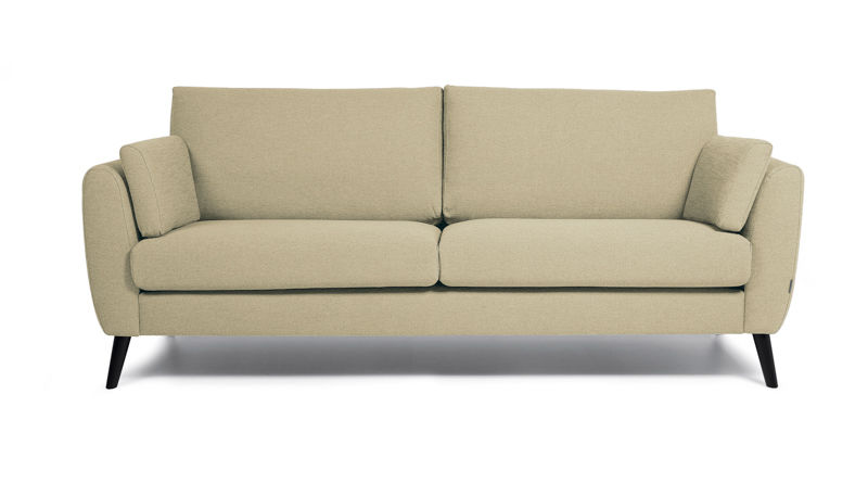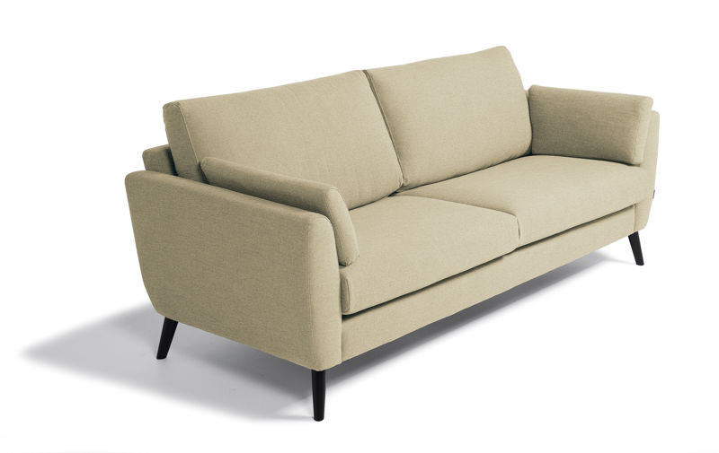Soffa Arild, 2,5-sits, beige tyg , en bekväm soffa i klassisk design med hög kvalitet och slitstarkt material, med ben i svartbetsat trä. Passar för både kontor, entré och reception, väntrummet och loungen. Stommen är byggd av massivt trä i alla bärande delar. Plymåns kärna består av ett högelastiskt tillskuret kallskum, svept med fibervadd. Ryggkuddar i bollfiber. Soffan kan fås i flera olika färger av tyg eller läderklädsel. Tyg: 56% bomull, 12% linne, 12% polyester, 8% akryl. Slitstyrka 53700 Martindale. Läder: Standard läder. Tidigare artikelnummer: 477724