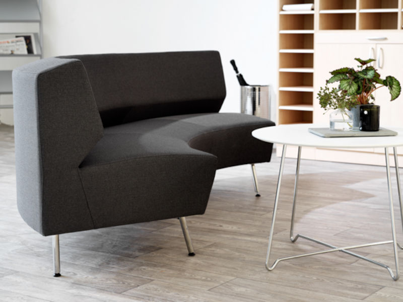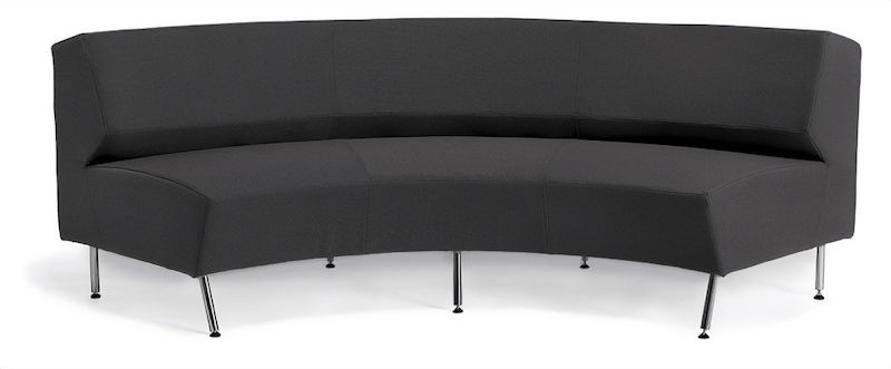 Soffa Lounge Svängd, mörkgrå. Kombinera raka och svängda soffmoduler för att sätta ihop den perfekta soffan för din miljö. Sofforna har stoppning av kallskum, tyg Nevotex LIDO 47 100 % polyester. Kromade ben av stålrör. Benen har vinklingsbara ställfötter för bästa stabilitet. Benens höjd är 180 mm. Sitthöjd 420, sittdjup 490 mm. Totalhöjd 820 mm för soffa. Lounge finns som standard i mörkgrått, för fler färger kontakta våra säljare.