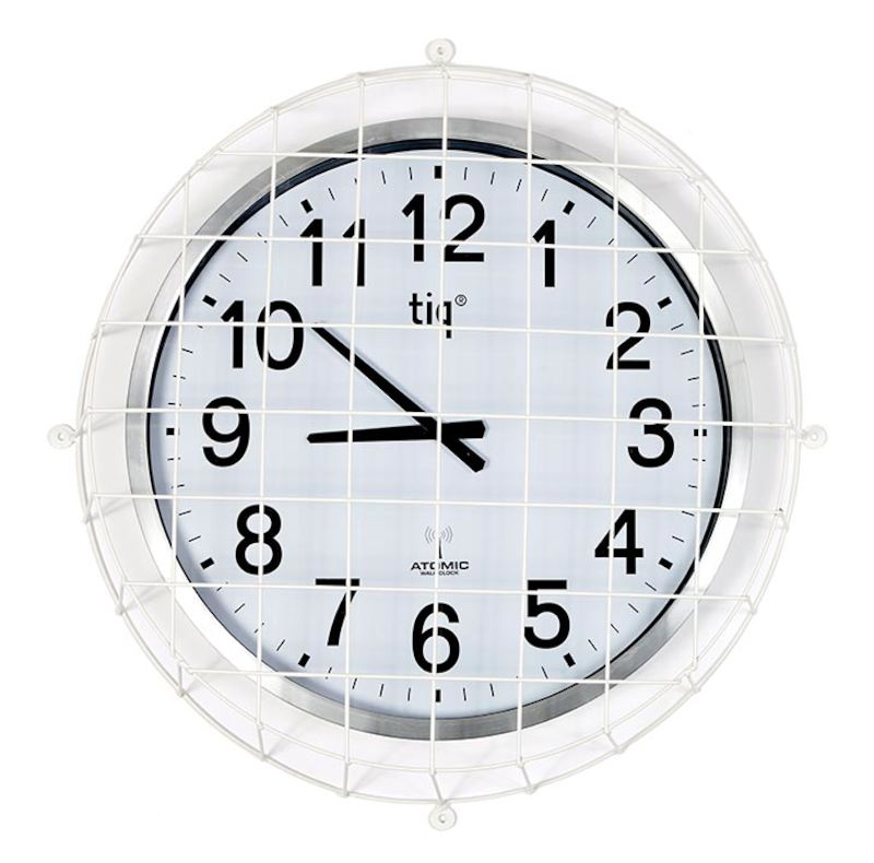 Skyddsgaller för Stor Väggklocka Radiokontrollerad. Skyddsgaller för väggur med en diameter på 500 mm eller mindre. Vitlackerade metallmaskor som skyddar klockan från att förstöras av sabotage eller olycka. Stoppar t.ex. en tennisboll.