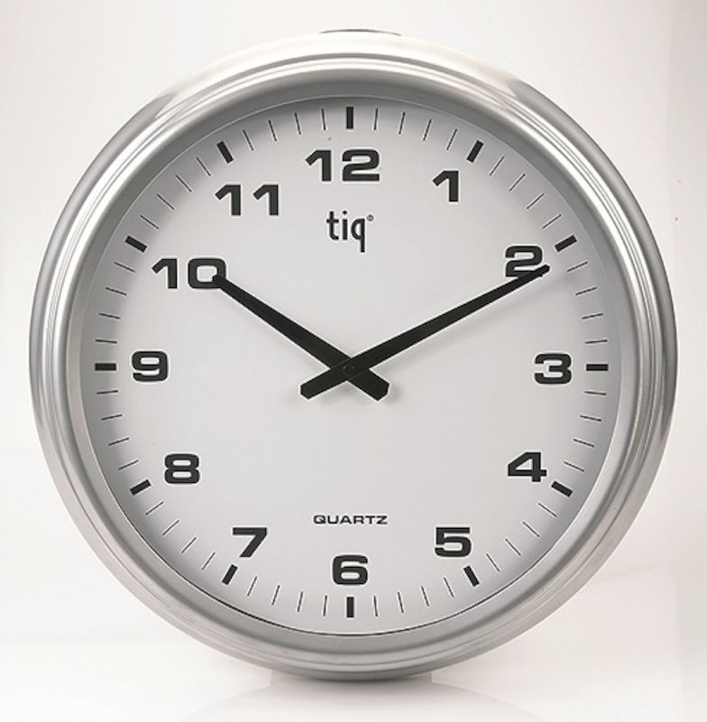 Väggklocka för Utomhusbruk. I borstad aluminium med en diameter på 350 mm. Väggklocka i glas med metallram för utomhusbruk. Inklusive adapter och nätkabel för eldrift, men kan även drivas med batteri. Batterier ingår ej.