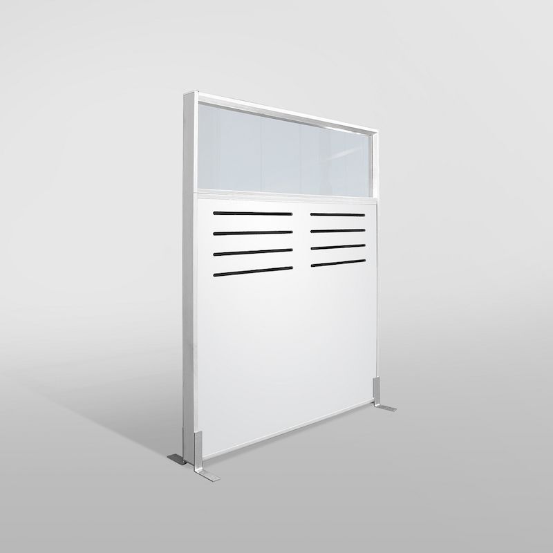 Skärmvägg Silence, med glasöverdel, 1000x1500 mm, tyg-glas /trä-glas, ljusgrå, björk. Det naturliga valet när design, kvalitet, ljudabsorption och flexibilitet får avgöra!