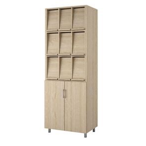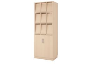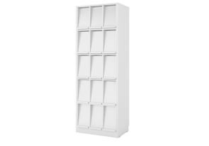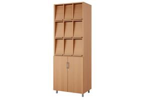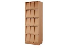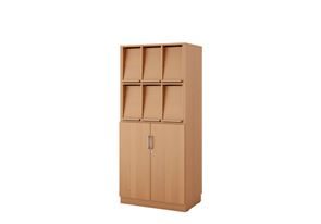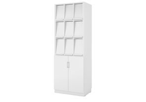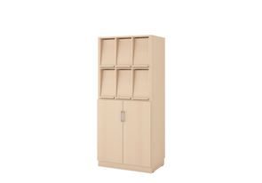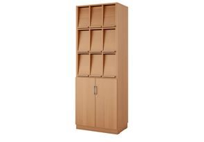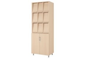 Broschyrställ Benna, BxDxH 810x400x1749 mm, björk, med ben. Tidskriftshylla och broschyrhylla som både visar och förvarar! Bästa sättet att exponera tidskrifter och andra trycksaker. Bakom varje hyllklaff finns ett stort förvaringsutrymme där du kan förvara olika trycksaker, vilket underlättar när man behöver fylla på exponeringen. Finns i olika modeller, hög eller låg med dörrar eller utan samt med ben eller sockel. Välj mellan bok, björk, ek eller vit laminat.