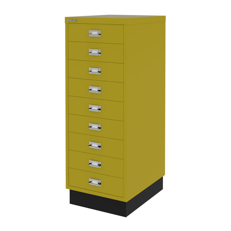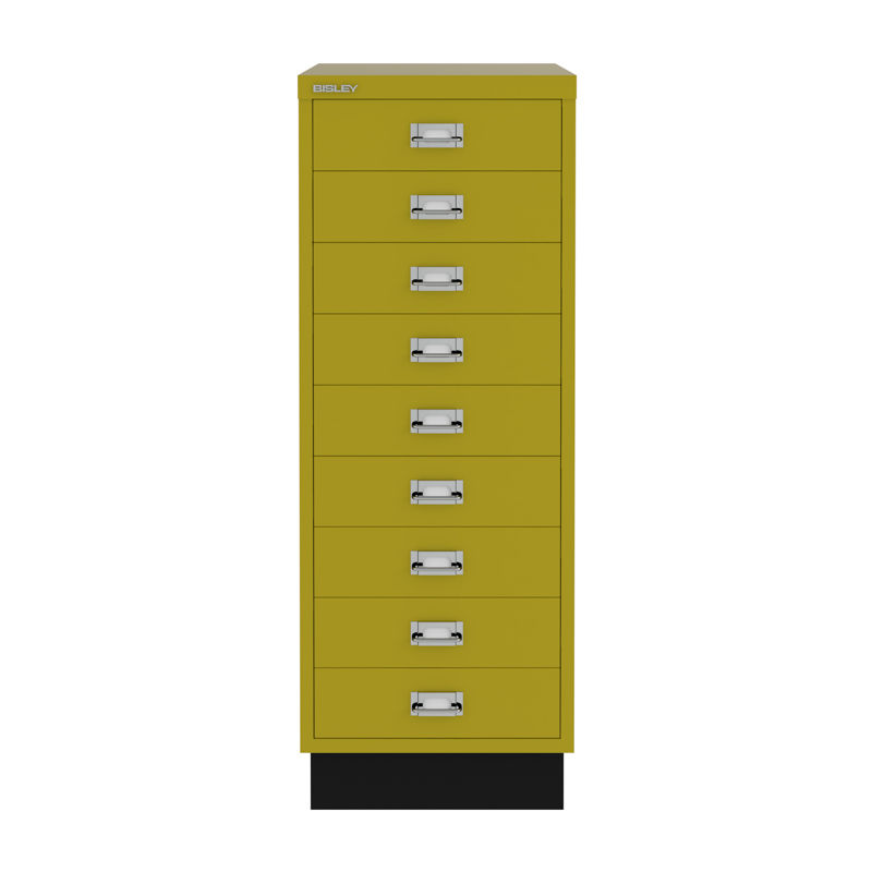 BISLEY Hurts Classic A3, 9 lådor, gul. Bisley hurtsar ger dig en snygg och praktisk förvaring för kontoret, och har en modern och klassisk design. Lådhurtsarna är tillverkad i lackerad plåt och kan placeras direkt på golvet eller kombineras med hjul. Finns i två grundstorlekar, baserat på de klassiska dokumentstorlekarna A4 och A3, samt i 2-3 olika höjder beroende på storlek. På varje låda finns etiketthållare och det finns lådinsatser att köpa till så du kan hålla ordning på dina småsaker. Finns i flera olika färger.