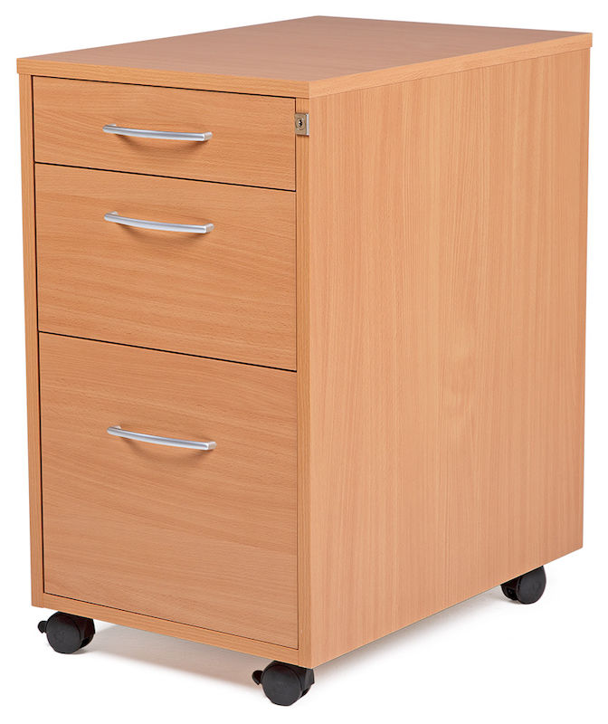 Skrivbordshurts Miami med hängmappslåda, D 600 mm, björklaminat. Extra hög lådhurts på hjul med tre lådor som är låsbara med centrallås. Den nedersta lådan har större kapacitet och är utrustad med en hängmappshållare. Totalt fyra hjul, varav två är låsbara hjul.