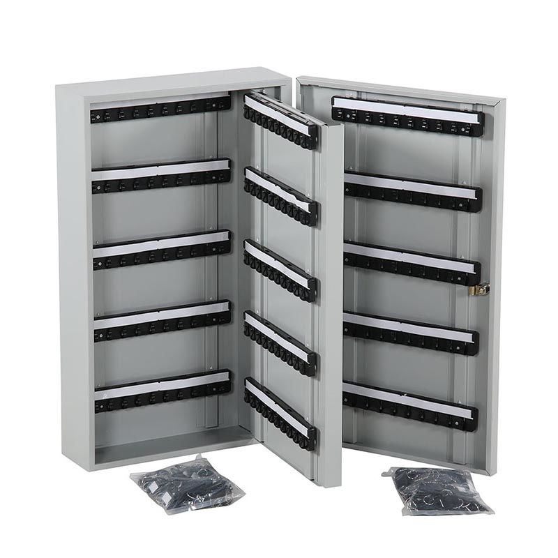 Levereras komplett med nyckelbrickor som kan märkas individuellt. Skåpet är försett med cylinderlås inklusive två nycklar. Tåligt och stabilt skåp pulverlackerat i RAL 7035. Ett utmärk val för dig som behöver en enkel och låsbar förvaringsmöjlighet för många nycklar.