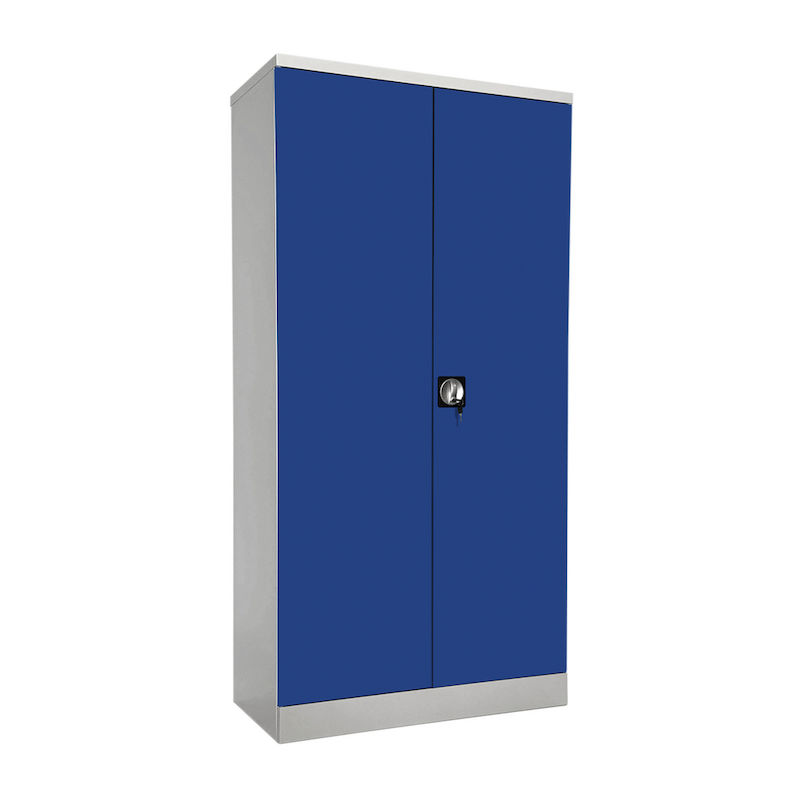 Förvaringsskåp med modulbackar Nilas, HxBxD 1830 x 915 x 421 mm, stomme ljusgrå / dörr blå / backar grå. Förvaringsskåp Nilas med 24 modulbackar är en utmärkt lösning för lager, verkstad eller produktion. Skåpet levereras omonterat och har en smart design som gör det enkelt att montera.