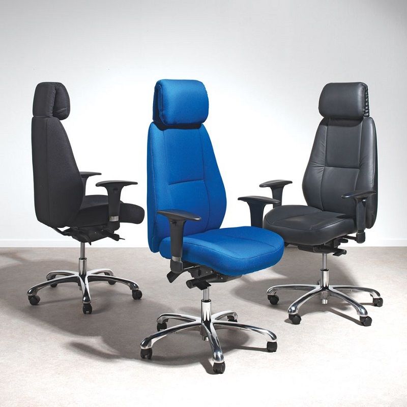 Kontorsstol Zenit, blå tyg, med hög rygg och nackstöd/OUTLET