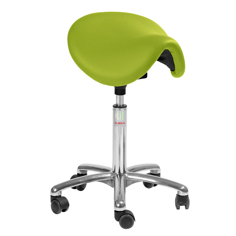 Sadelstol Dalton, grön konstläder, utan ryggstöd, fast sits . Sadelstol Dalton är formad som en ”klassisk” cowboysadel, vadderad med skum och klädd i konstläder eller tyg. Den ger god komfort och en ergonomisk arbetsställning under arbetet. Den naturligt avslappnade hållning och raka rygg som sadelstolen främjar gör att man kan sitta längre perioder utan att belasta kroppen fel. Sadelstolen passar dig som vill stärka upp ryggen och förbättra din sittställning.