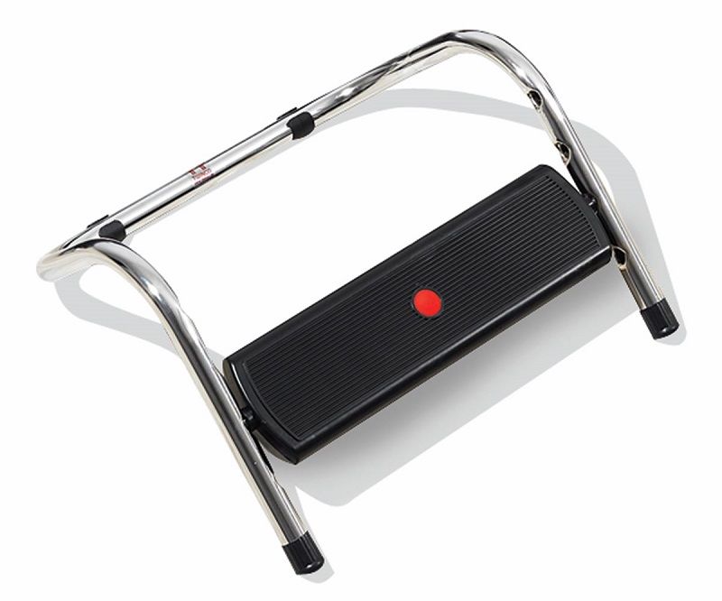 Fotstödet har förkromat rör med hål för höjdinställning för att enkelt kunna justera höjden. Fotplattan vinklas steglöst och stabila glidfötter gör att stödet står säkert.