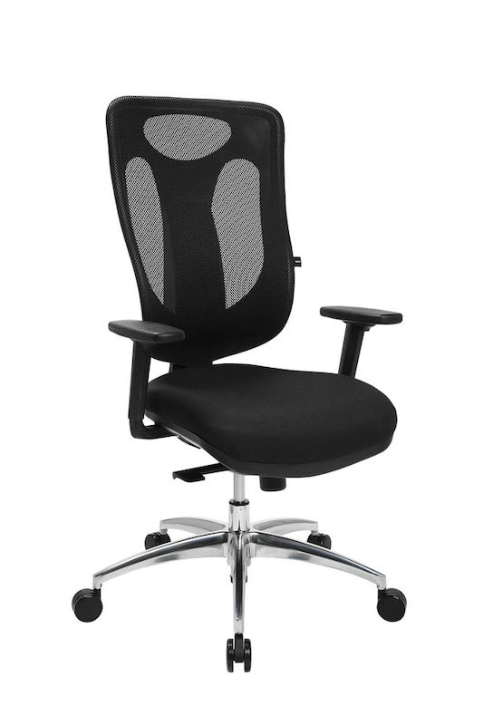 - Omfattande ryggstöd klätt med ventilerande nätyta och en sits som erbjuder stöd för bäckenet och knärulle
