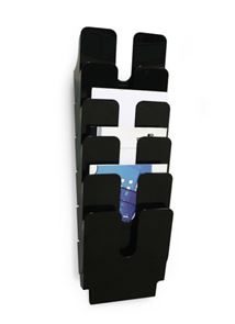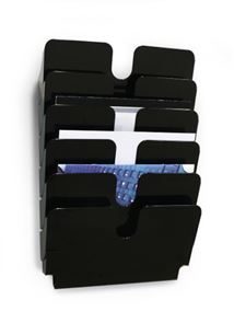 Monteras enskilt eller flera i rad. Skruv och plugg ingår för väggmontering. Varje fack rymmer 23 mm tjocka buntar. Finns i alternativen stående/liggande A4-format samt i svart eller transparent polystyrenplast. I 2 eller 6 facks utförande. Tillverkad i slagtålig polystyrenplast.