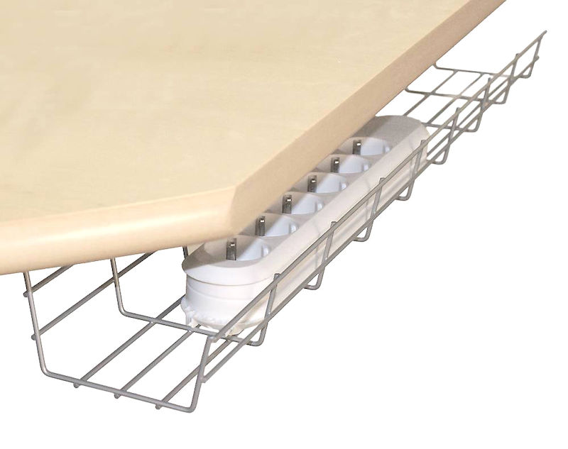 Kabelkorg Ränna, BxDxH 720x150x105 mm, vit. Praktisk kabelkorg för optimal uppsamling av kablar under skrivbordet. Skapa en lättstädad och trivsammare arbetsmiljö med ett kabeldike och undvik störande kabelhärvor och löst hängande kopplingsdon. Mycket enkel att montera under skrivbord eller arbetsbord.