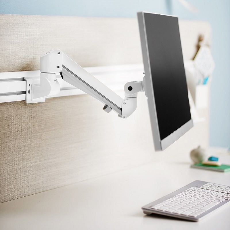 Kondator Conceptum Monitorarm, gasfjädrad, L 300 mm, vit. En gasfjädrad monitorarm av högsta kvalitet. 3-ledad, med smart design och Quick-Hook function. Passar samtliga Conceptum profiler. Levereras med toolbarfäste. Conceptum är en stadig toolbar serie vilken kan kompletteras med ett mycket stort urval av tillbehör. Ett flexibelt och komplett koncept, som ger unika möjligheter för anpassning till individuella behov. Allt med en design och prestanda, som förenar både elegans och funktionalitet. Finns för både fristående montage direkt i bordsskivan (F-Profil) alternativt montage på skärmvägg (M-Profil). Conceptum M-Profil passar till samtliga Gerdmans bordsskärmar.