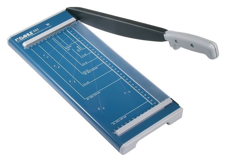 Pappersskärare Dahle med giljotin. Stabil pappersskärare i metall med överkniv och underkniv. Bord med markerade centimeter och fotoformat. Perfekt när en sax inte räcker till för dina skärarbeten. Idealisk för kontor eller hobbybruk. Skär 8-35 ark á 70 gr.