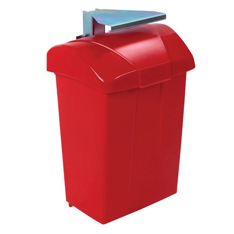 Batteribehållare i plast med säkerhetsbygel, luckan går endast att öppna 3 cm. Stativ i galvad stålplåt och batteribox med lock tillverkad i HD-Polyeten. Volym 15: Liter. Möjliggör en enkel och säker förvaring av batterier eller små lysrör. Barnsäker.