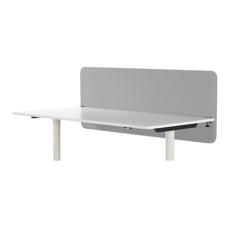 Bordsskärm Standard, B 1600 mm, grå. Bordsskärm Standard är ett begränsat och optimerat urval av de mest sålda bordsskärmarna. Levereras i ett komplett paket där svarta bordsbeslag ingår. Skärmen består av ljudabsorberande fyllning som är monterad inuti en massiv träram. Beslagen fungerar på raka och fasade bordskanter (fasning upp till 20mm). Finns i två färger, svart och grått.