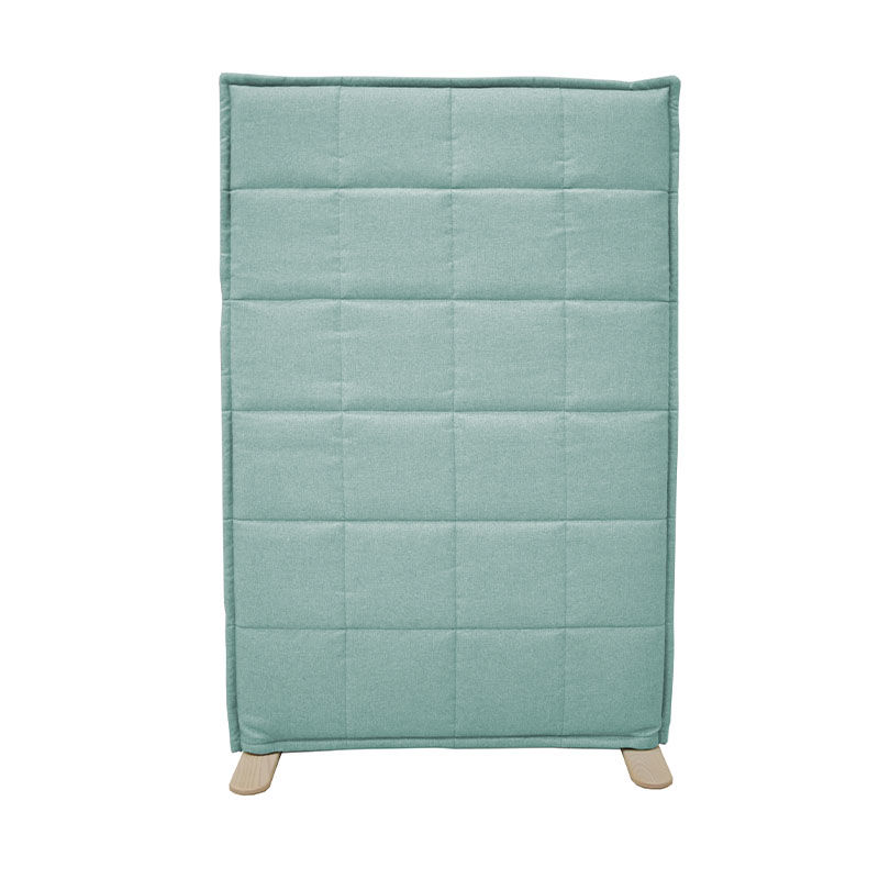 Golvskärm Stitch, LxHxD 810x1540x85 mm, ljusgrön. Golvskärm Stitch består av en trästomme med ett fodral av ljudabsorberande fiberfyllning klätt med tyg som kommer med ett designat rutmönster. Skärmens tjocklek och uppbyggnad gör Stitch till en mycket bra ljudabsorbent som passar in på alla typer av kontor, den både absorberar och dämpar ljud. Benen är tillverkade av lackad ask och har likt skärmen ett mjukt formspråk som skapar ett inbjudande intryck. Finns i 14 olika färger i tyg Salsa, välj den färg som passar in bäst på ditt kontor.