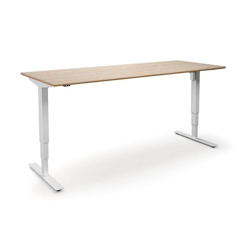 Höj och sänkbart skrivbord Atlanta Trend, rak, LxB 2000x800 mm, ek/vit, ett elektriskt höj och sänkbart skrivbord. Bordskivan kommer med fasade kanter vilket ger en stilren känsla av ett tunt och modernt höj och sänkbart skrivbord som är tilltalande för ögat. De rundade hörnen är gjorda för att passa in i en modern kontorsmiljö med fristående placering av skrivbord. Bordskivan är tillverkad i 25 mm tjock MDF belagd med vit laminat samt en 10 mm vit kantlist av ABS-plast. Det höj och sänkbara stativet är lackerat i vitt, svart eller silver. Höj och sänkbart H 630-1280 mm (slaglängd 650 mm) hastighet 25 mm/s, Maxbelastning 150 kg vid utbredd belastning.