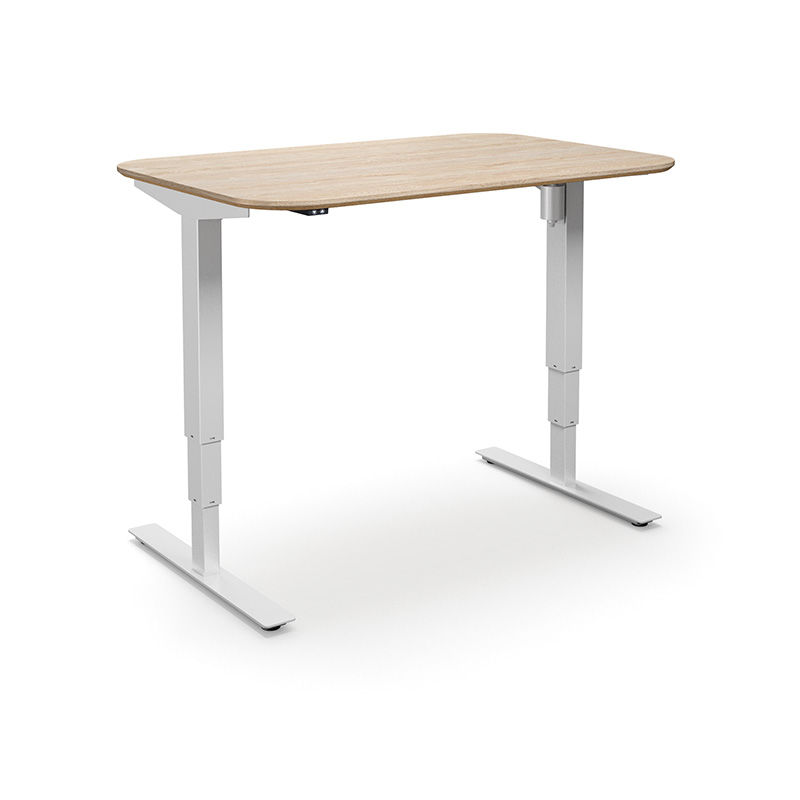 Höj och sänkbart skrivbord Atlanta Trend, rak, runda hörn, LxB 1200x800 mm, ek/vit, ett elektriskt höj och sänkbart skrivbord. Bordskivan kommer med fasade kanter vilket ger en stilren känsla av ett tunt och modernt höj och sänkbart skrivbord som är tilltalande för ögat. De rundade hörnen är gjorda för att passa in i en modern kontorsmiljö med fristående placering av skrivbord. Bordskivan är tillverkad i 25 mm tjock MDF belagd med vit laminat samt en 10 mm vit kantlist av ABS-plast. Det höj och sänkbara stativet är lackerat i vitt, svart eller silver. Höj och sänkbart H 630-1280 mm (slaglängd 650 mm) hastighet 25 mm/s, Maxbelastning 150 kg vid utbredd belastning.