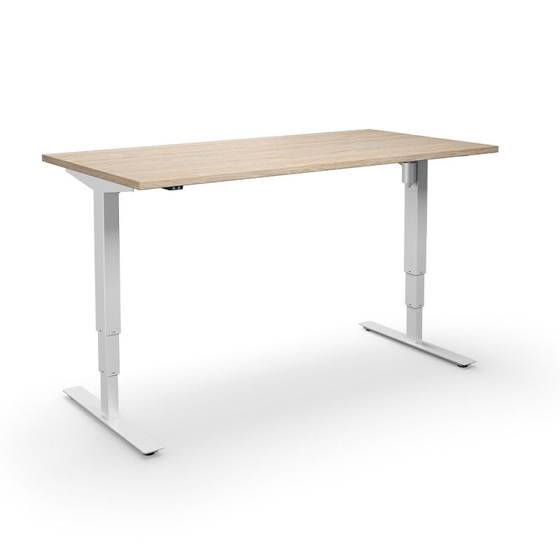 Höj och sänkbart skrivbord Atlanta, rak, LxB 1800x800 mm, ek/vit, finns i flera olika utförande och färger, max 150 kg belastning. Höj och sänkbart elstativ, H 630 - 1280 (slaglängd 650 mm) hastighet 25 mm/s, stativ lackerat i vitt, silver eller svart.