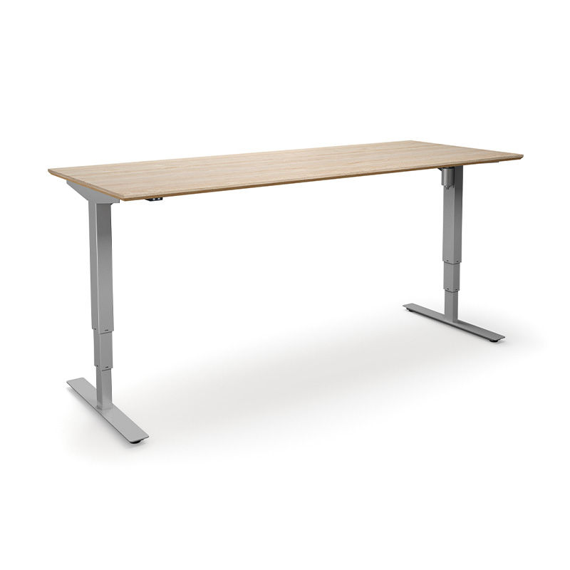 Höj och sänkbart skrivbord Atlanta Trend, rak, LxB 2000x800 mm, ek/silver, ett elektriskt höj och sänkbart skrivbord. Bordskivan kommer med fasade kanter vilket ger en stilren känsla av ett tunt och modernt höj och sänkbart skrivbord som är tilltalande för ögat. De rundade hörnen är gjorda för att passa in i en modern kontorsmiljö med fristående placering av skrivbord. Bordskivan är tillverkad i 25 mm tjock MDF belagd med vit laminat samt en 10 mm vit kantlist av ABS-plast. Det höj och sänkbara stativet är lackerat i vitt, svart eller silver. Höj och sänkbart H 630-1280 mm (slaglängd 650 mm) hastighet 25 mm/s, Maxbelastning 150 kg vid utbredd belastning.