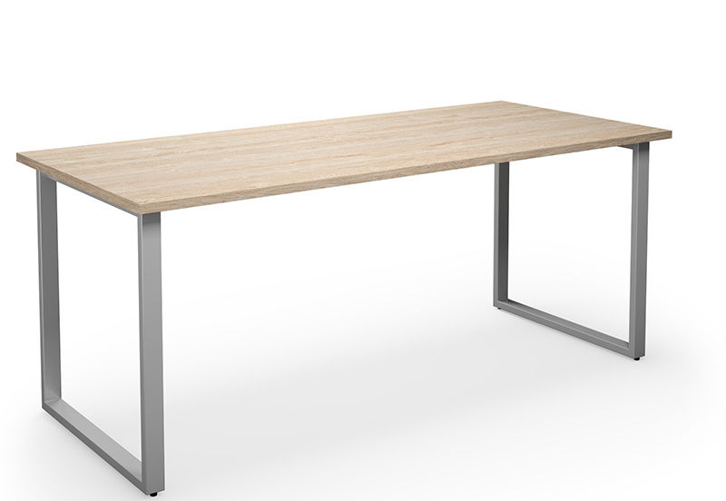 Bord DUO-O, rak skiva, LxB 1800x800 mm, ek/silver. Skrivbord med laminatskiva, höjd 740 mm inklusive skrivbordsskiva. Skrivbordet kan kompletteras med en hängande hurts. Finns i flera olika färger och utförande på skivan.