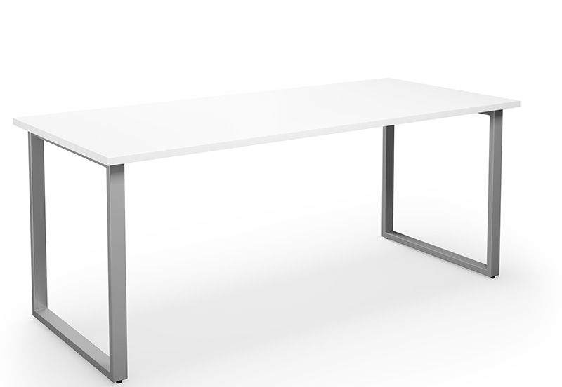 Bord DUO-O, rak skiva, LxB 1800x800 mm, vit/silver. Skrivbord med laminatskiva, höjd 740 mm inklusive skrivbordsskiva. Skrivbordet kan kompletteras med en hängande hurts. Finns i flera olika färger och utförande på skivan.