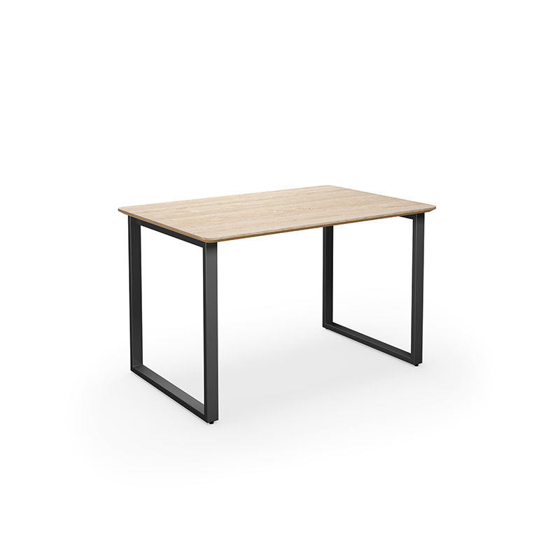 Bord DUO-O Trend, rak skiva, runda hörn LxB 1200x800 mm, ek/svart. Modernt bord för kontor, konferens eller lunchrum med stadigt stativ och laminatskiva som är lätt att rengöra.