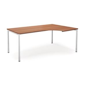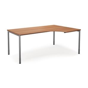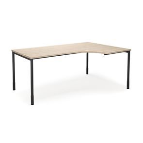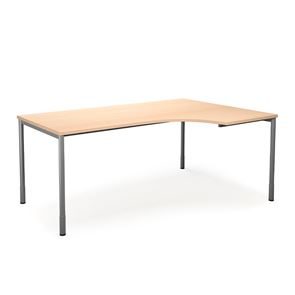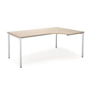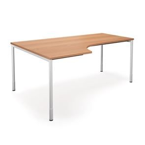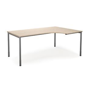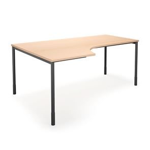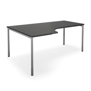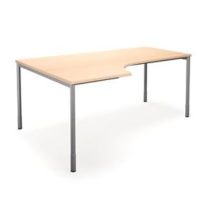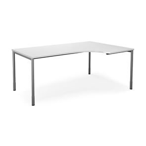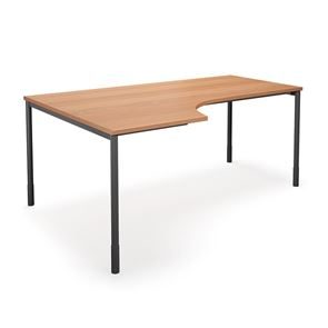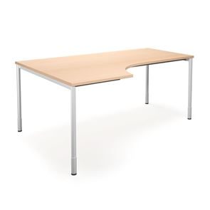 Ett enkelt och stilrent hörnskrivbord med laminatskiva och runda ben som är justerbara i höjd mellan 700-800 mm, inklusive bordsskiva.