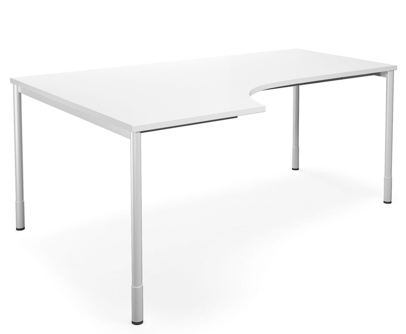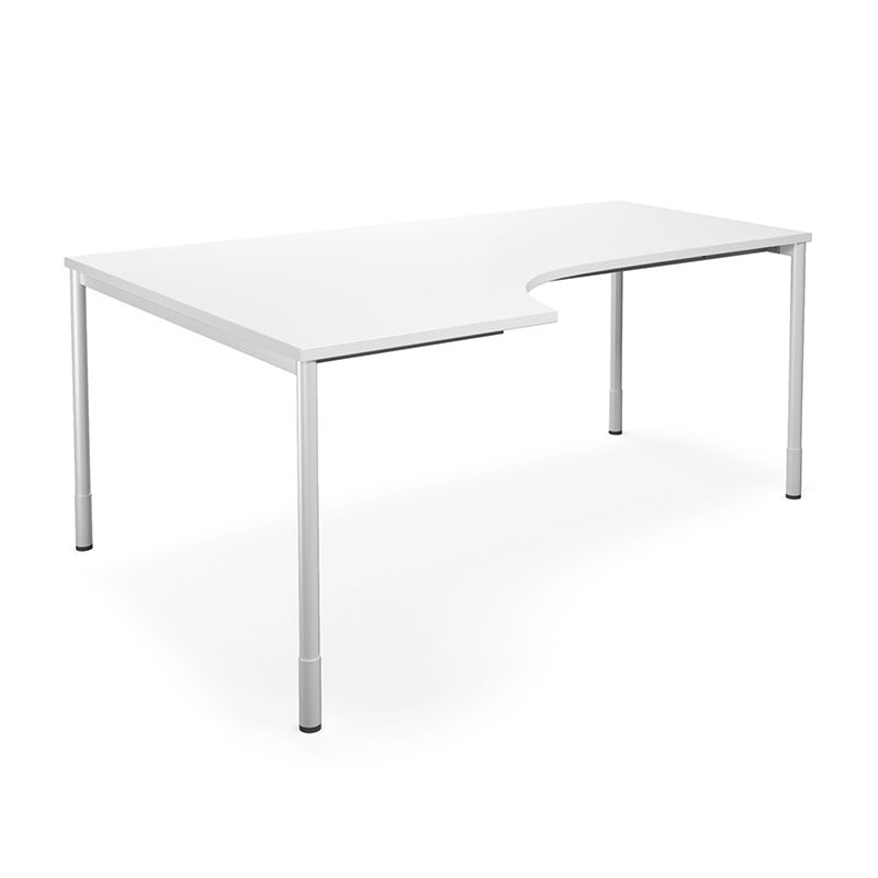 Ett enkelt och stilrent hörnskrivbord med laminatskiva och runda ben som är justerbara i höjd mellan 700-800 mm, inklusive bordsskiva.