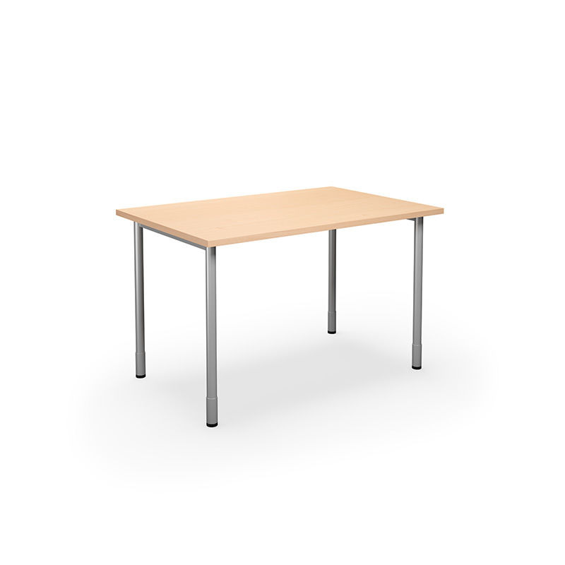 Bord DUO-C, rak skiva, LxB 1200x800 mm, björk/silver. Skrivbord med laminatskiva och runda ben som är justerbara i höjd mellan 700–800 mm, inklusive skiva.