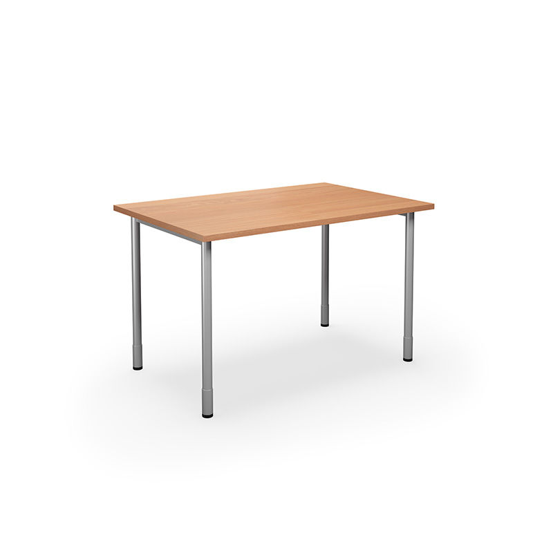 Bord DUO-C, rak skiva, LxB 1200x800 mm, bok/silver. Skrivbord med laminatskiva och runda ben som är justerbara i höjd mellan 700–800 mm, inklusive skiva.