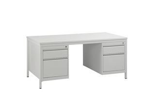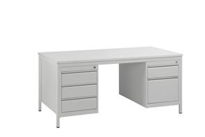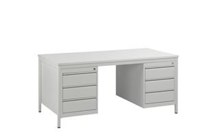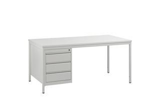 Skrivbord Sigge, lådor 3 x 140 mm, BxD 1600 x 800 mm. Plastbelagd bänkskiva, ljusgrå, 25 mm tjock. Stabilt stativ av fyrkantsrör, pulverlackerat ljusgrått RAL 7035.