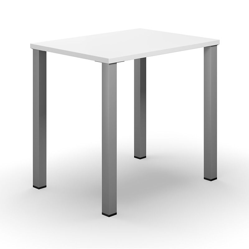 Bord DUO-U, rak skiva, LxB 800x600 mm, vit/silver. Skrivbord med laminatskiva och fyrkantiga ben, höjd 740 mm inklusive skrivbordsskiva. Skrivbordet kan kompletteras med en hängande hurts. Finns i flera olika färger och utförande på skivan.