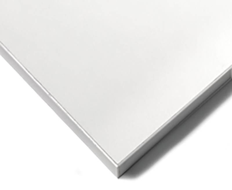 Laminat: Skiva belagd med en bok, björk, ek, mörkgrå, grå eller vitfärgad dekor med kantlist av ABS-plast. Bordsytan är hård och mycket rep- och slagtålig. Färgen är konstant, dvs den ändrar sig ej utseendemässigt när den åldras.