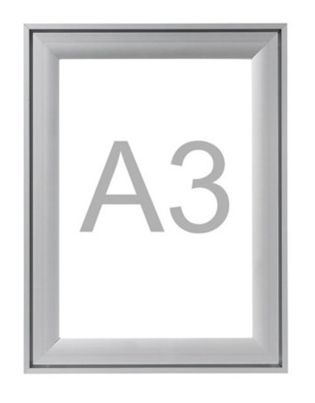 Affischram Premium, A3, HxB 474x351 mm, aluminiumprofil, 2-pack. Extra bearbetade aluminiumprofiler, silvereloxerade. Synlig rambredd 37 mm. Ram med dubbelt sneddade hörn.
