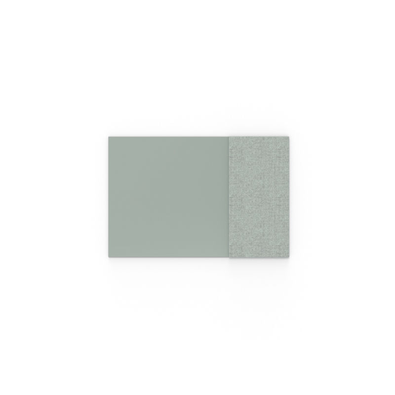Whiteboard glas Mood Textile, BxH 1500x1000 mm, grön/grå. Magnetisk skrivtavla av glas i kombination med en anslagstavla i 100% ull. Den nålbara anslagstavlan kan monteras på valfri sida om skrivtavlan. Finns i 9 utvalda färg- och tygkombinationer. Tavlan är tillverkad i optiskt glas med extra låg järnhalt, vilket ger ett helt klart glas. Det klara glaset ger en lyster och en exakthet i färgerna som inte kan uppnås med ett vanligt standardglas. Tyg:Blazer. Finns i flera olika storlekar och färger.