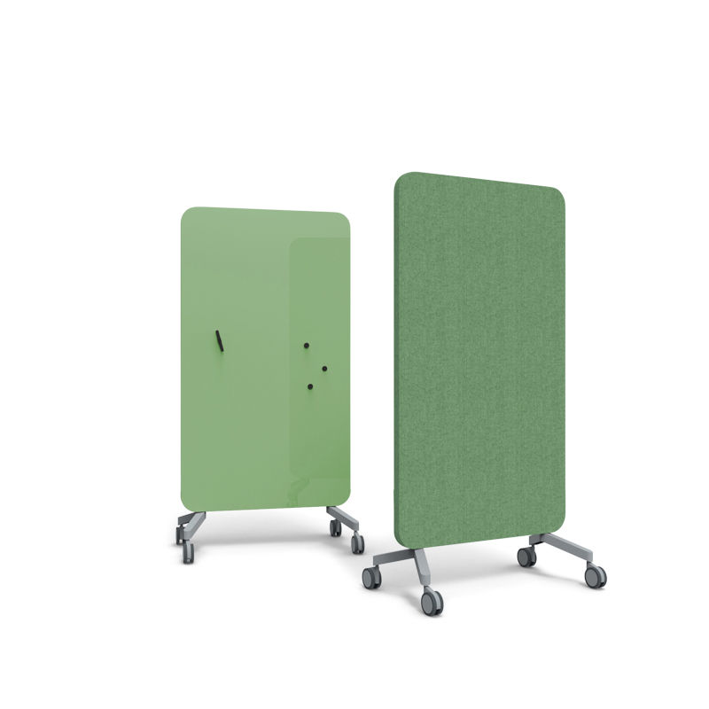 Whiteboard glas Lintex Mood fabric mobile, grön, BxH 1000x1960 mm. Mobil skrivtavla i glas med tygklädd ljudabsorberande baksida. Mood Textile är en mångsidig och flexibel skärm som kombinerar material och funktioner på ett naturligt sätt. Den finns i en mindre modell med heltäckande glas på framsidan och en större modell med framsida av både glas och ljudabsorberande yta, båda med ljudabsorberande fyllning och tygklädd baksida. Välj mellan 9 utvalda färgkombinationer. Levereras med fötter och hjul som standard.