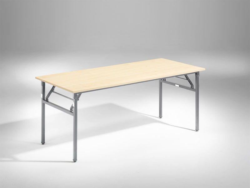 Fällbord Starko, 1800x800 mm, björk/silver. Fällbord med laminatskiva och kraftigt stativ med ställfötter. Svartlackerat bordsunderrede i 30x30 mm stålrör, fälls upp eller ihop med ett enkelt handgrepp. Staplingsdistanser ger bra skydd av bordsskivan samt säker och stabil stapling.