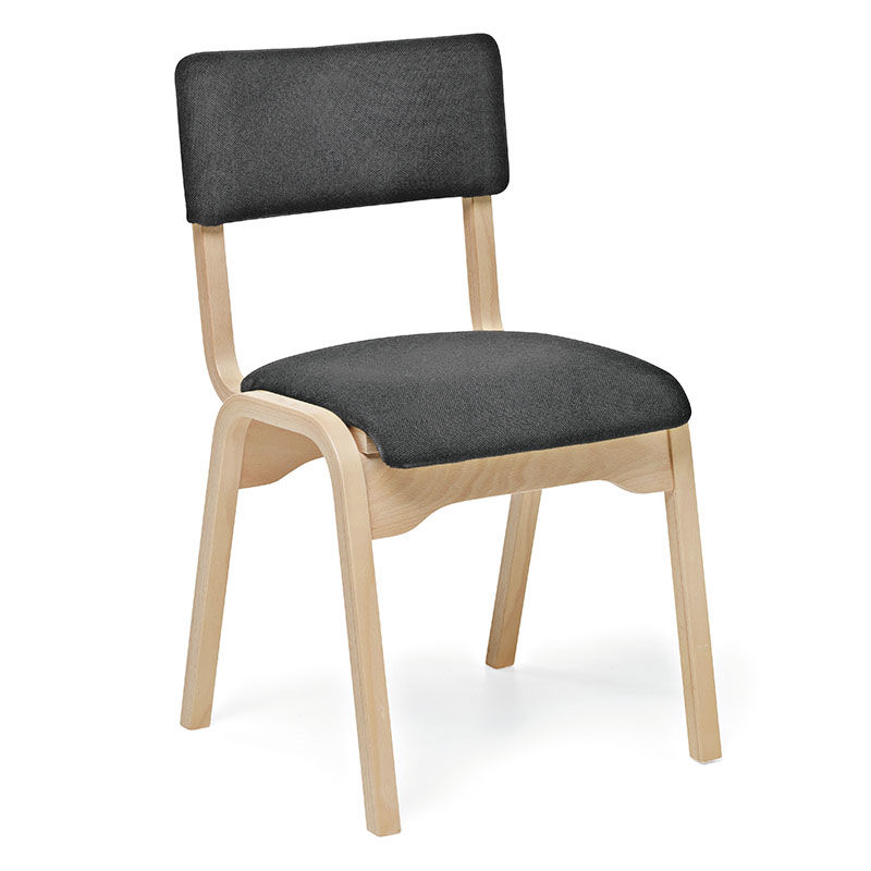 Trästol Company, bok med klädd sits, 4 st/fp. Stapelbar stol i skiktlimmat, formpressat trä.