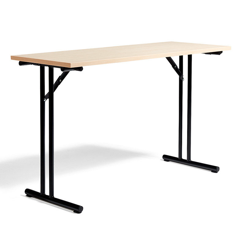 Konferensbord Byggbar. Ett fällbart konferensbord som är lätt att placera ut och anpassa efter eget behov. Kombinera med hörnskivor, frontpaneler eller mellanskivor och skapa ett bord helt efter ditt behov. Borden är hopfällbara med fällbara T-ben tillverkade av stålrör som finns i kromat och lackerat utseende. Längd: 1200 mm. Välj mellan bredden 450 mm eller 600 mm beroende på hur djupt du vill ha ditt bord. Skivan finns i bok, björk eller vit laminat.
