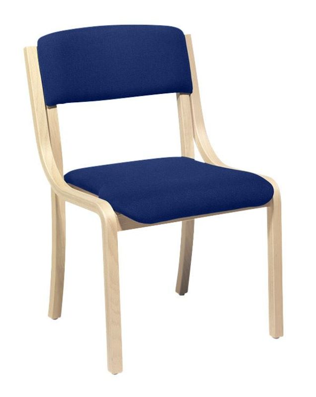 Konferensstol Chelsea, björk, utan armstöd, blå. En staplingsbar konferensstol av formpressad bok eller björk. Går att få med armstöd eller utan armstöd, finns i flera olika färger. Tjock stoppning i sits och rygg. Fabriksmonterade kopplingsbeslag till Chelsea finns som tillbehör.